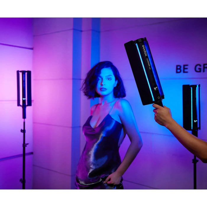 The Godox LC500Rmini is a lightweight, handheld RGB LED light wand that’s compact enough to take anywhere, yet powerful enough to elevate your creative work. Measuring around 45cm long and weighing just 559g, this pocket-sized powerhouse is ideal for photographers, videographers, and content creators alike. Whether you're in the studio or out on location, the LC500Rmini offers incredible versatility with RGB colour control, variable colour temperature (2500K–8500K), and 15 built-in lighting effects. With a detachable battery grip handle and included barndoor attachments, it gives you total control over your lighting, no gels or complicated setups required.
