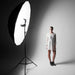 This umbrella acts as a large reflective surface, bouncing light back onto your subject to maximise output while keeping the quality soft and flattering. The size allows the light to wrap naturally around your subject, producing clean highlights and rich, open shadows without looking flat.