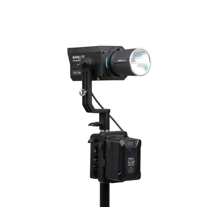 The Nanlite V-Mount Battery Grip with 4-Pin XLR Connector is the perfect way to power your Nanlite Forza 150B or FC-120B LED spotlight without cables. Whether you're holding it in your hand or mounting it on a stand using the built-in 16mm (5/8") receiver, this grip gives you the freedom to light your scene wherever inspiration strikes.