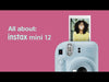Introducing the Fujifilm Instax Mini 12, the ultimate instant camera that combines style and functionality. Get ready to capture memorable moments with ease using its user-friendly modes and controls, Wwith just a simple twist of the lens, the Instax Mini 12 is ready to go. Twist it again, and you'll activate the Close-up mode, perfect for capturing fabulous selfies. The camera's carefully positioned selfie mirror ensures that you always get the perfect shot. Plus, with automatic flash control and credit card-sized prints, you can easily share your fun-filled selfies with friends and family.