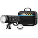 The round flash head and extended flash tube produce an even light spread that fills modifiers smoothly. A Bowens mount and included Rapid Box Switch insert ensure compatibility with a wide range of Westcott and third-party modifiers. Despite its power, the FJ800 remains portable, weighing just 3.4 kg and featuring a robust carry handle and a durable, self-monitoring cooling system.