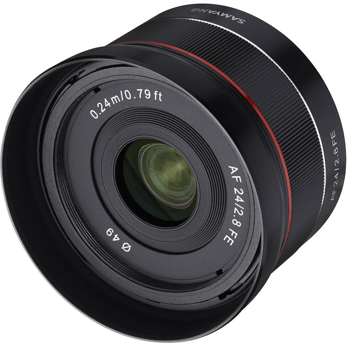 The Samyang AF 24mm F2.8 FE features the both a fast and accurate Auto Focus and the minimum focusing distance of 0.24m, it’s ideal for outdoor events and also close-up photos such as travel, sports events, ,landscape, selfie, pet, portrait, food and etc.