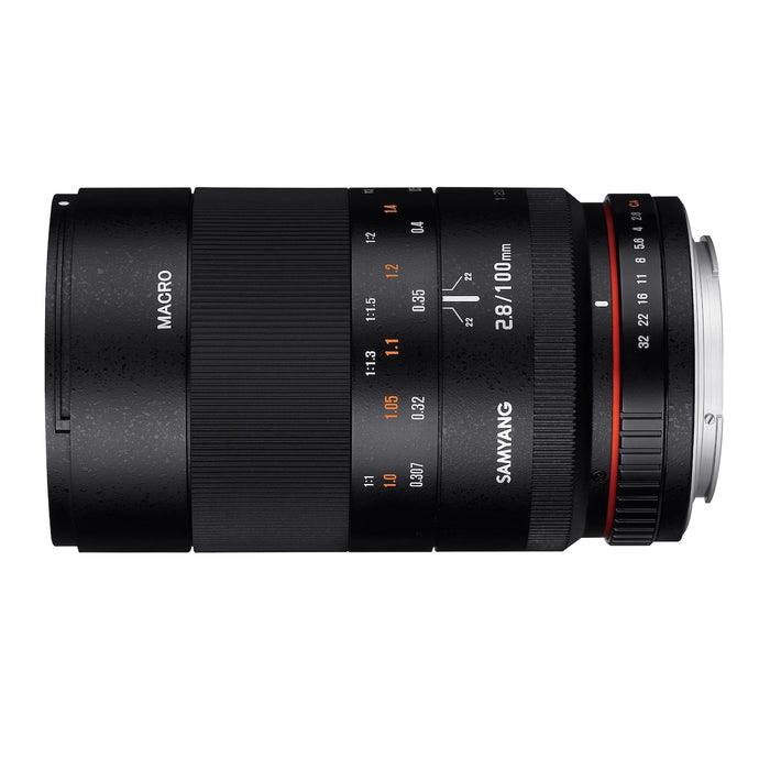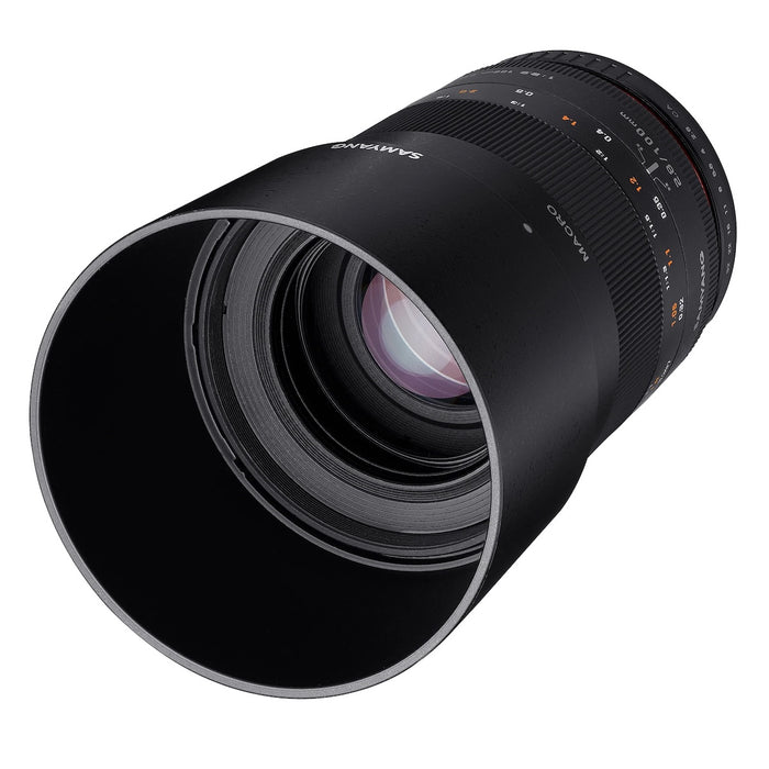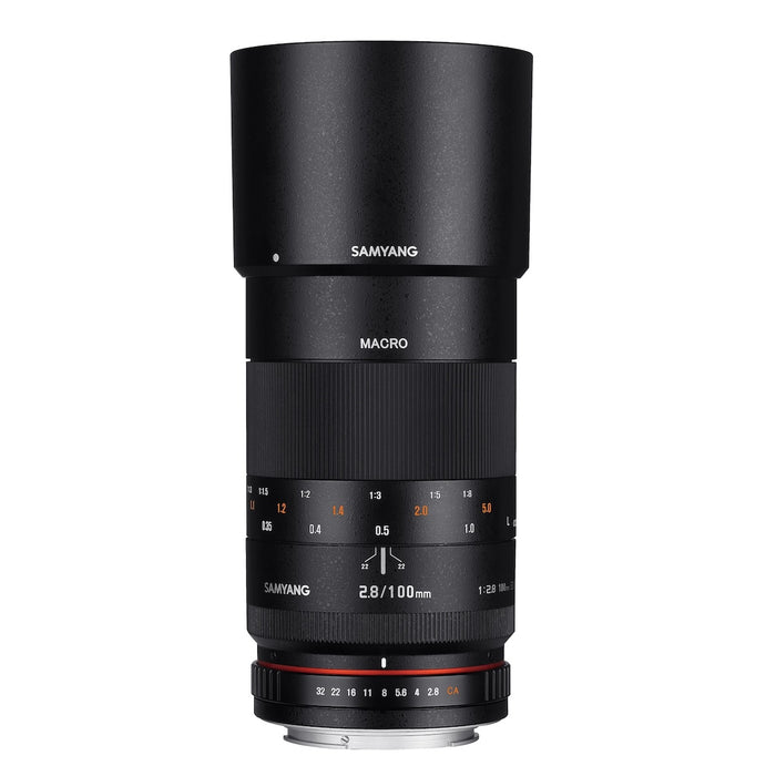 Samyang Optics 100mm F2.8 ED UMC MACRO is a macro telephoto manual focus lens designed for full frame sensor sizes. The maximum close-up magnification is 1:1. This macro lens with vivid colour and soft out-focusing is the best lens for close-up images of flower and insects. It also can be used as a 100mm telephoto lens for landscapes and portraits.