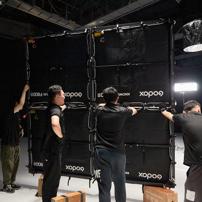 The Godox F800R is a 4'x4' (120x120cm) IP54 ultra-thin, flexible RGB LED light mat, purpose-built for the needs of the film and television industry. This 900W LED features a slim profile and flexible design, making it easy to position in areas where traditional video light fixtures cannot reach. It offers a CRI of ≥96 and a TLCI of ≥98 for exceptional colour accuracy. The F800R supports industry-standard protocols such as DMX512 and CRMX, as well as control via the Godox Light App through Bluetooth. With its IP54 weather-resistance rating, the F800R is perfect for large-scale film, TV productions, broadcasting, and commercial video shoots, whether you're working in a studio or outdoors on location.