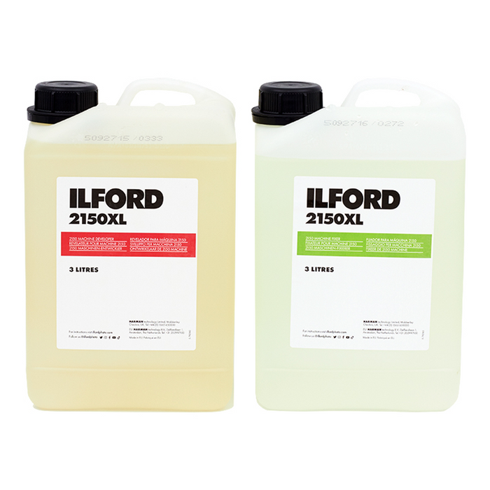 Ilford 2150XL developer and ILFORD 2150XL fixer are liquid concentrate chemicals supplied as a kit specifically for use with the ILFOLAB 2150 RC tabletop paper processor. 2150XL developer and fixer are economical, easy to use, clean working, robust and have a high print capacity. They are capable of producing superb quality prints from all ILFORD RC papers and the high-quality RC papers made by other manufacturers. The 2150XL kit comes in two 3L concentrated bottles.