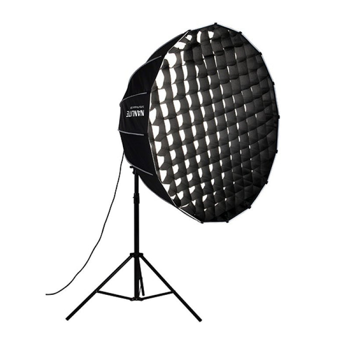 This fabric grid is an optional extra for use with the NanLite 1.2cm parabolic softbox. It adds directionality and contrast to the light source. The grid quickly attaches via touch fasteners and folds down flat for storage and transport.