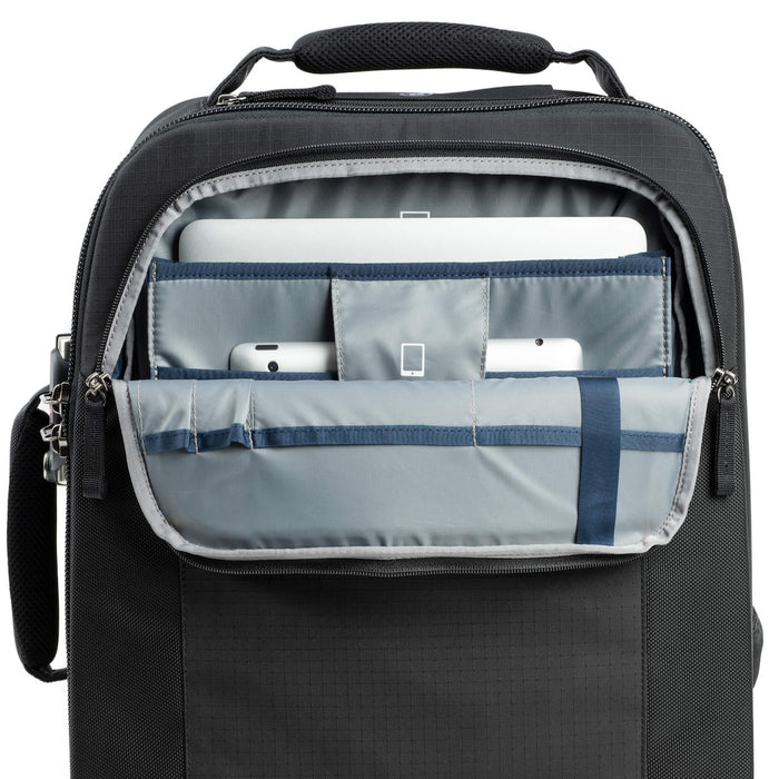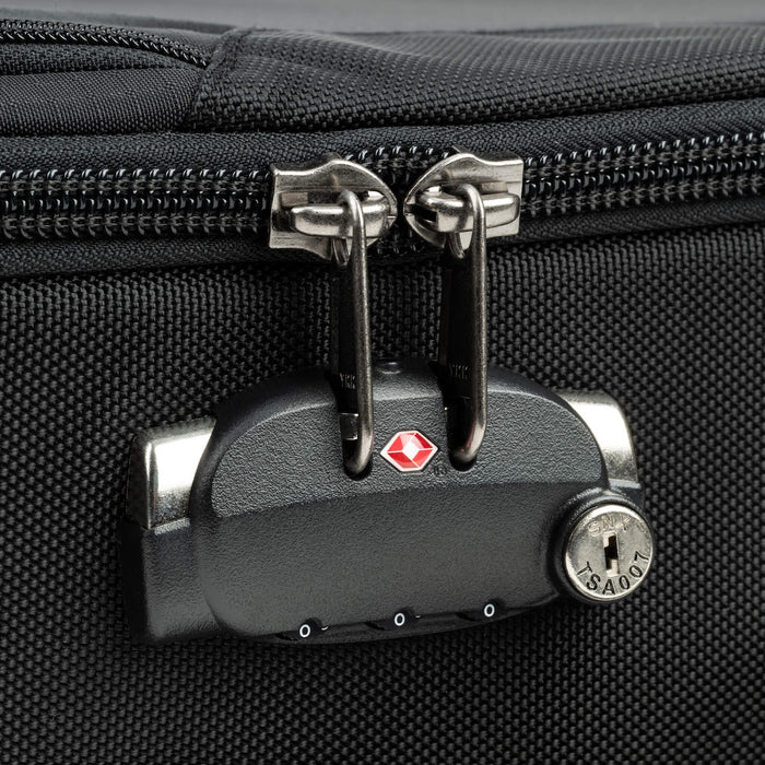 The bag’s exterior is made from tough, water-repellent ballistic nylon and reinforced in all the right places. It’s designed to handle the bumps and scrapes of travel, and the wheels are user-replaceable for long-term use. Add in the rain cover, and you’re ready for anything the journey throws at you.