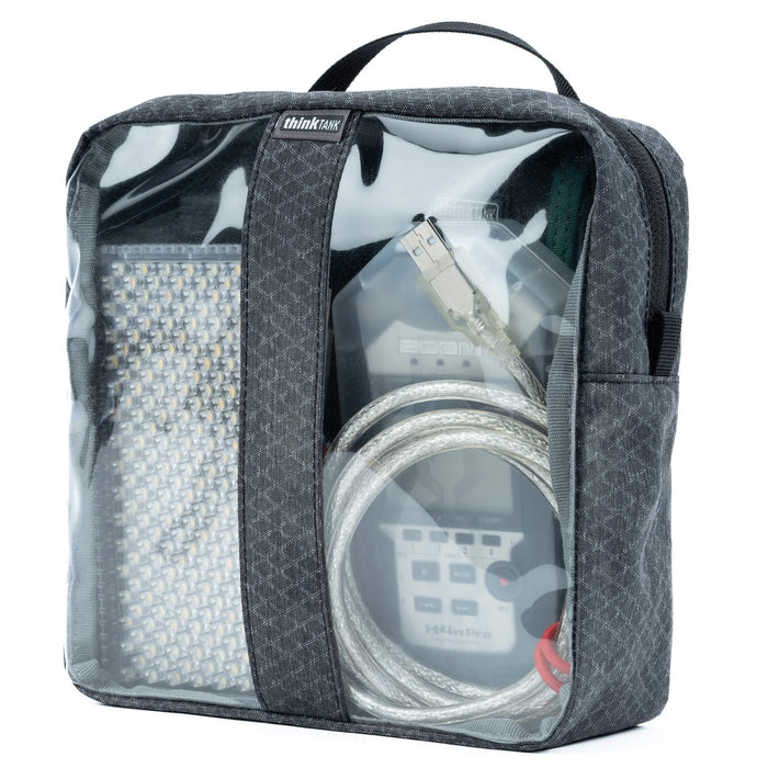 The biggest in the range, the Think Tank Cable Management 30 V3 is built to handle your bulkiest kit without sacrificing visibility or organisation. Designed for professionals who travel with more, this roomy pouch is perfect for larger cables, power supplies, wireless triggers, or even multiple smaller items that need sorting fast. With clear panels front and back, a wide zippered top, and a fold-away divider, it’s your go-to solution for gear that demands space and structure.