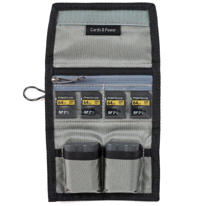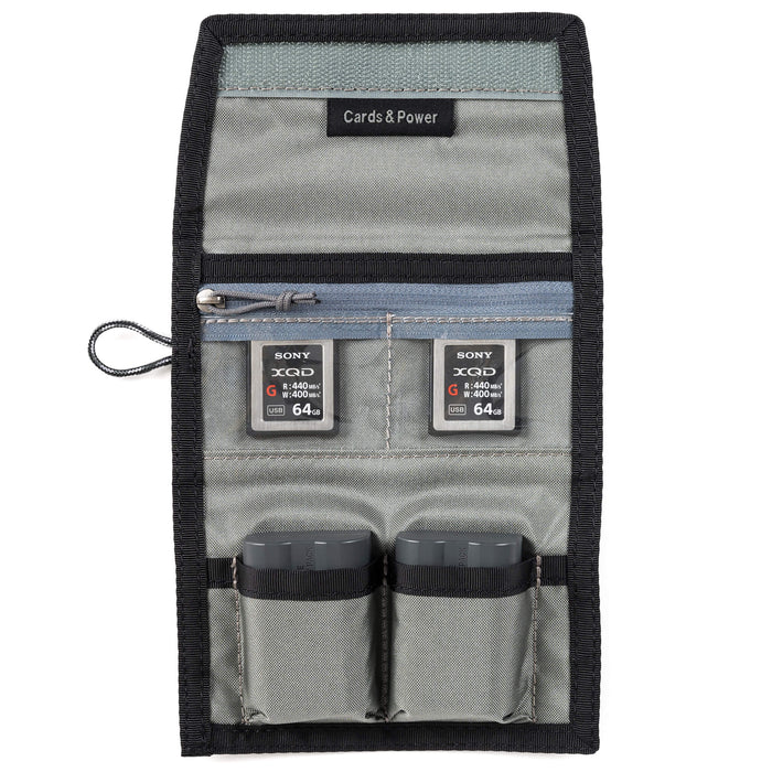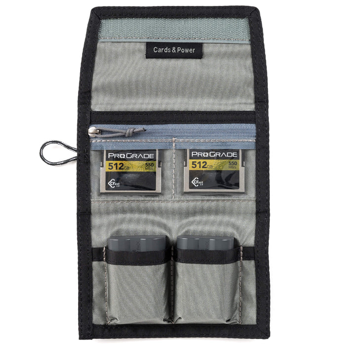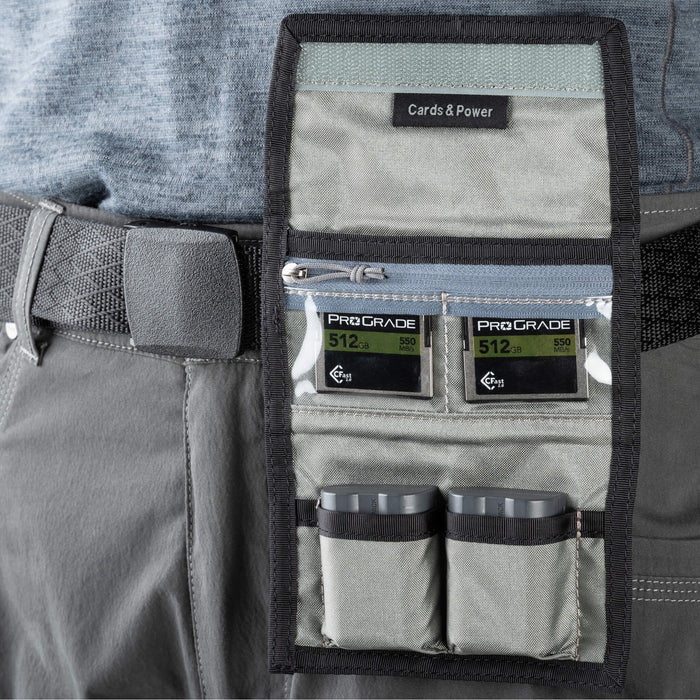 Each version of the Cards & Power V2 Wallet is colour-coded, making it easy to spot the right one quickly, perfect when you're managing multiple cameras or card formats. The transparent card pockets allow you to see at a glance which cards are in use, and which are ready to go. Flip full cards over to avoid accidental overwrites. The external label window can hold your name, job details, or contents info, which is especially useful on fast-paced shoots or when passing the wallet to an assistant.